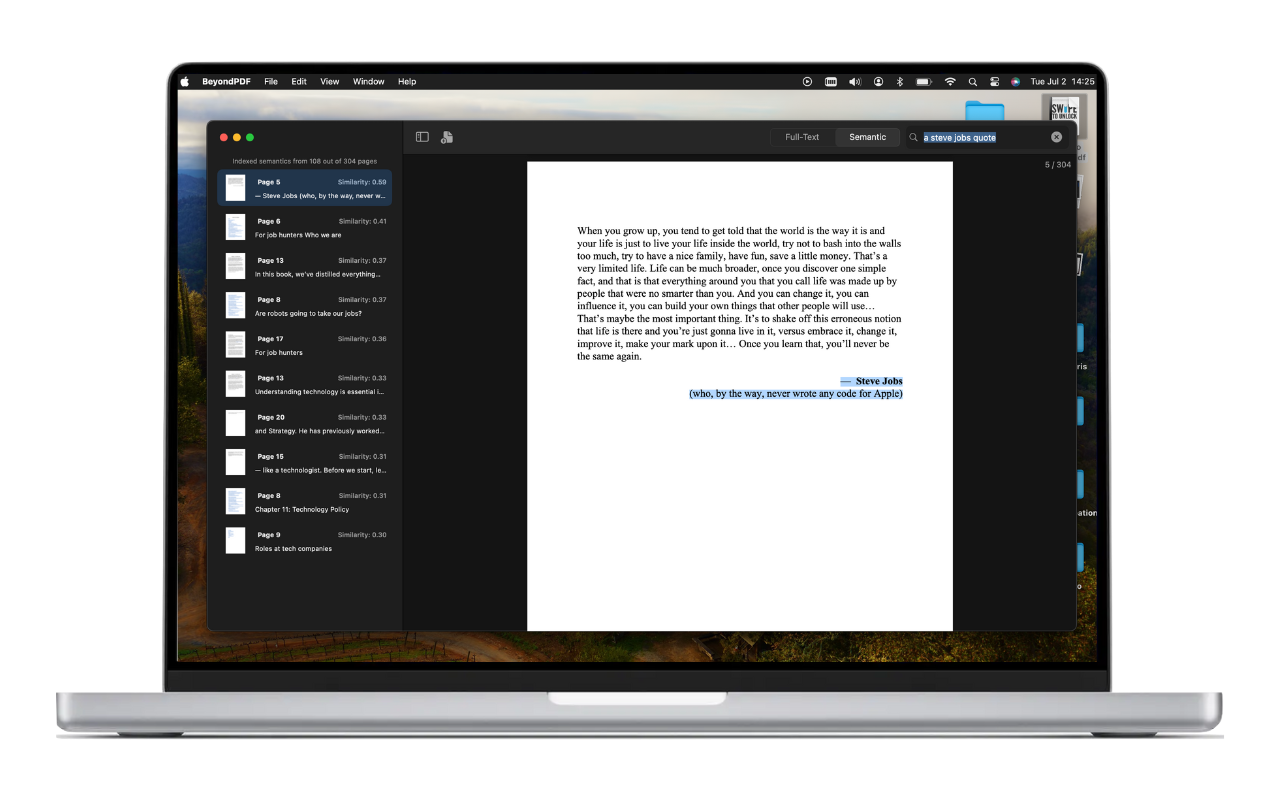 While traditional PDF readers often have basic search functions, BeyondPDF goes beyond by offering advanced semantic search capabilities, making it much easier and faster to find the information you need in complex documents.